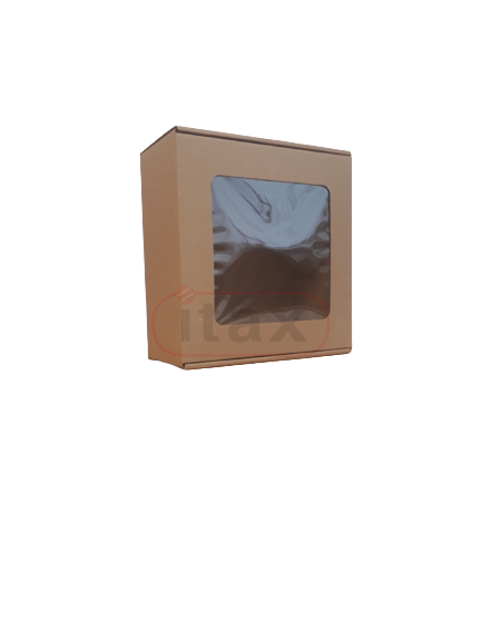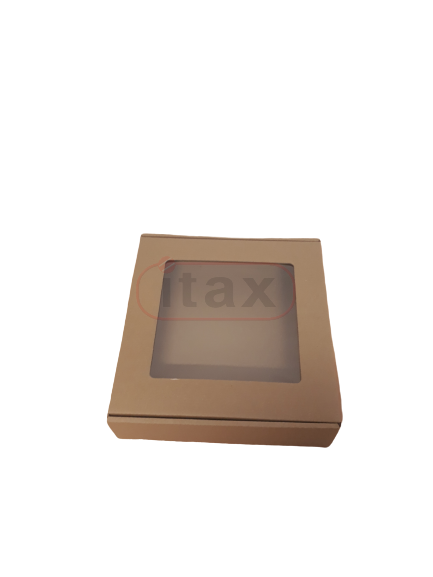 Karton pudełko ozdobne brązowe 200x200x75 mm z okienkiem