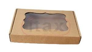 Karton fasonowy z okienkiem wykonany jest z tektury brązowej 4w fala EF o gramaturze 455 g/m2 z odkrytą falą (kartonik jest karbowany). Wysoka jakość wykonania zapełnia i bardzo dobra jakość pudełka. Idealne do pakowania upominków. Wymiar kartonika: 250x450x80mm