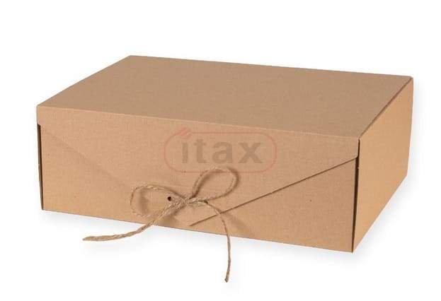 Karton pudełko ozdobne brązowe 260x177x120 mm ze sznurkiem jutowym