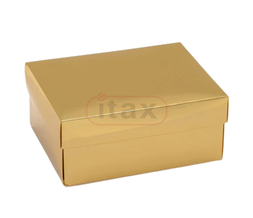 Ozdobne bardzo eleganckie pudełko z wieczkiem w kolorze złotym (błyszczącym) wykonane z bardzo wysokojakościowej laminowanej tektury. Kartonik idealny do zapakowania prezentu, upominku na każdą okazję.