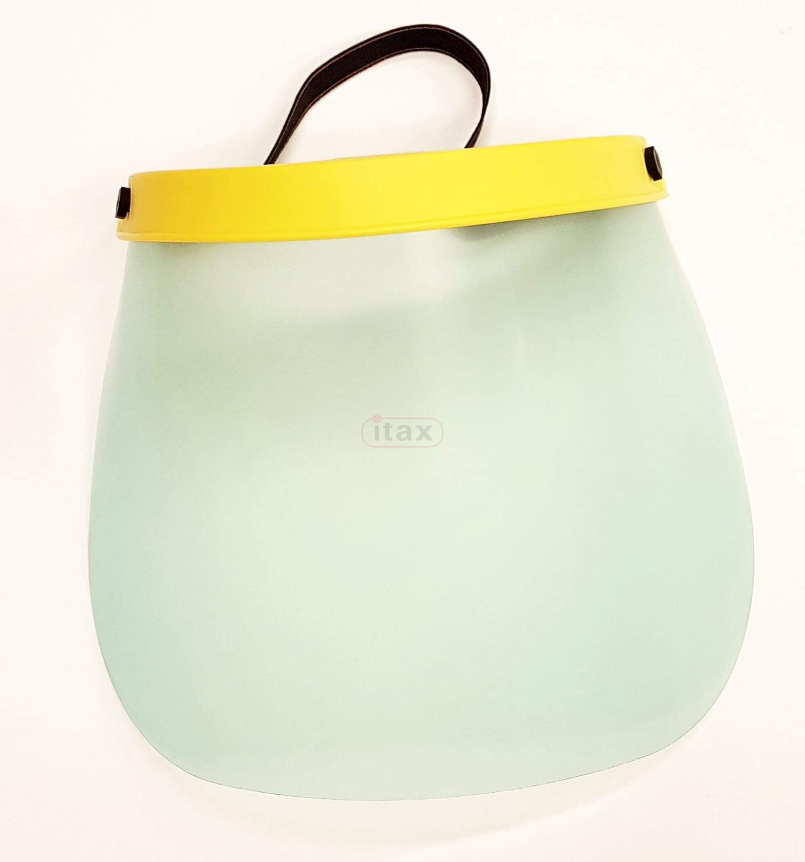 Osłona na twarz zwana również przyłbicą z szybką wykonaną z poliwęglanu oraz ramki z tworzywa sztucznego z zakładana na elastyczną gumkę w kolorze czarnym o szerokości 20 mm, dzięki czeku doskonale dopasowuje się do głowy. Osłona błony śluzowej ust, oczu i nosa przed kontaktem z zanieczyszczonymi dłońmi, przedmiotami oraz drobnymi urazami mechanicznymi