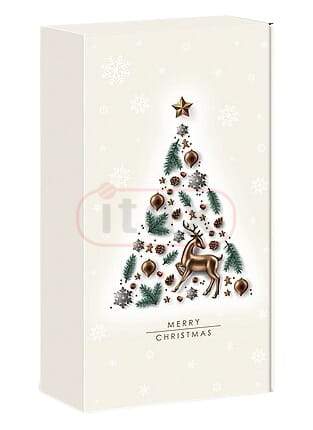 Pudełko ozdobne fasonowe biały 360x192x93mm z nadrukiem choinki - idealny na 2 butelki