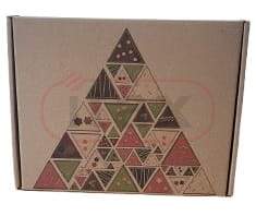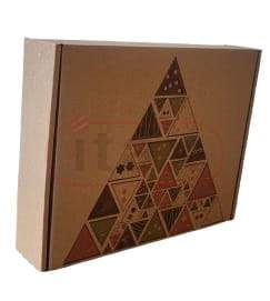 Karton wykonany jest z tektury mikrofali brązowej (fala E) o gramaturze 360 g/m2 z nadrukiem świątecznym CHOINKA TRÓJKĄT. Idealny jako opakowania do pakowania prezentów.