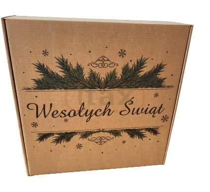 Pudełko ozdobne fasonowe brązowe 300x300x110mm z nadrukiem świątecznym - gałązka