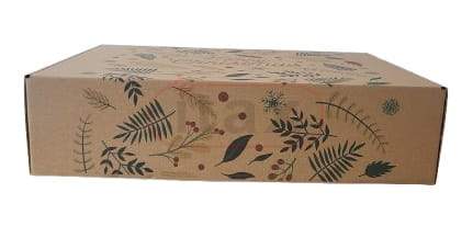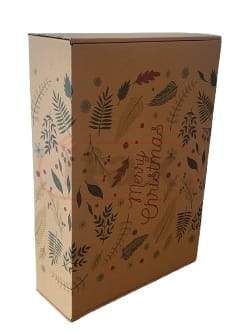 Karton wykonany jest z tektury mikrofali brązowej (fala E) o gramaturze 400 g/m2 z nadrukiem świątecznym MARRY CHRISTMAS. Idealny jako opakowania do pakowania prezentów.