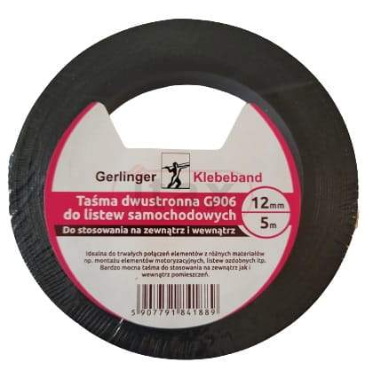 Taśma dwustronnie klejąca montażowa do listew samochodowych GERBAND G-906 12mm/5m