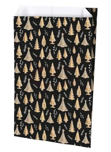 Czarna torebka fałdowa z subtelnym motywem leśnym to świetny sposób na estetyczne zapakowanie drobnych upominków. Jej minimalistyczny wygląd w połączeniu z delikatnym wzorem nadaje prezentom wyjątkowy, zimowy charakter i sprawdza się zarówno na święta, jak i inne okazje wymagające efektownego opakowania.