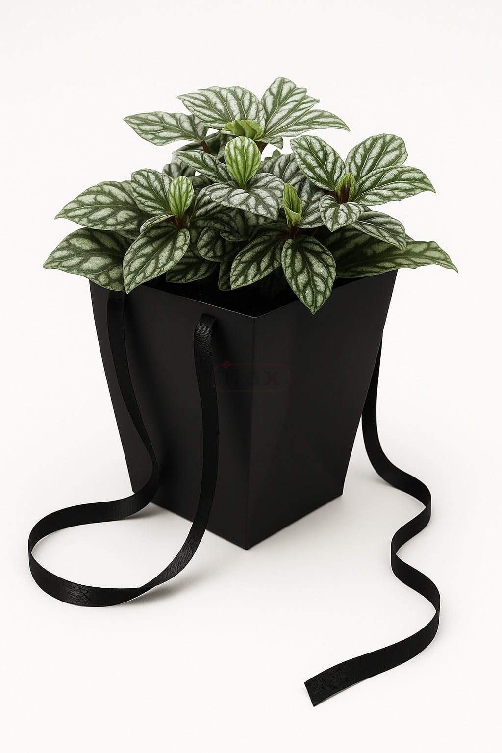 Torebka laminowana 125x125x180 mm CZARNA papierowa do doniczni z kwiatami , prezentów