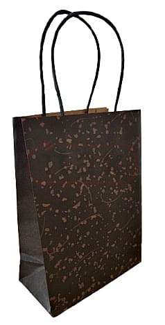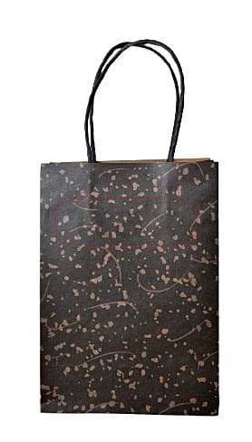 Torebka papierowa 21x15x8 cm z uchwytem skręcanym czarna z nadrukiem brokat