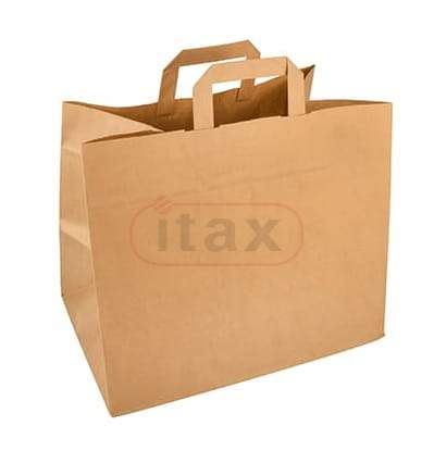 Torebka papierowa brązowa 320x220x250 z uchwytem płaskim cateringowa